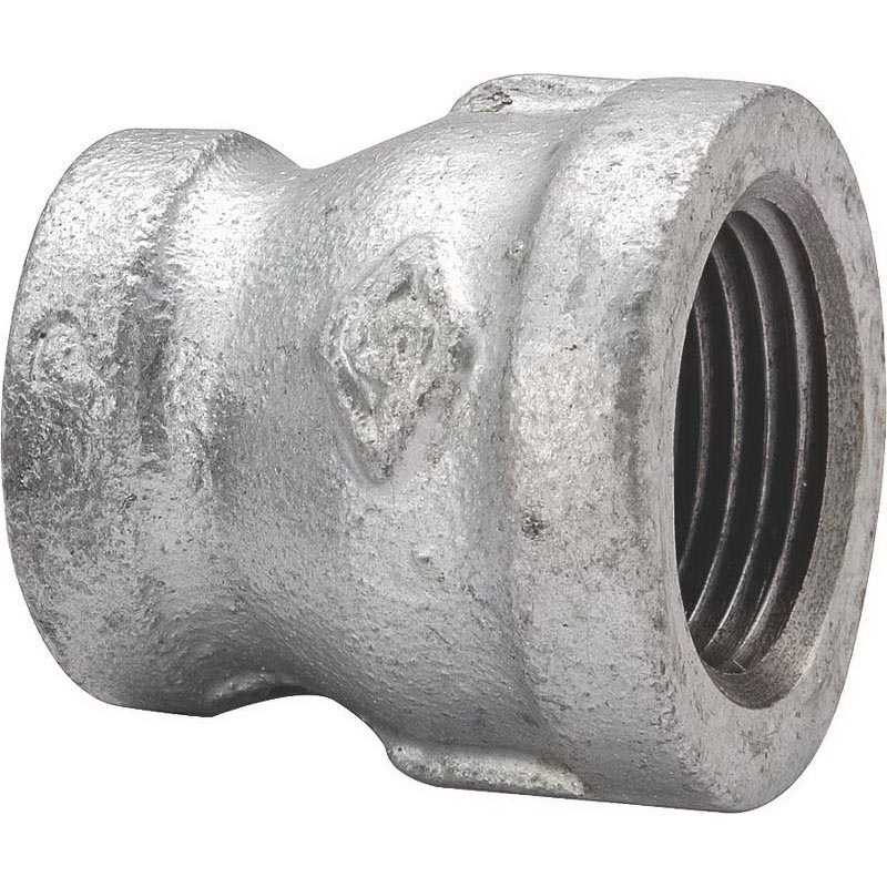 Mueller® 511 Reducing Pipe Coupling, 1-1/2 x 1-1/4 Inch, NPT, Class 150, 300 psi WOG Working, ASTM A197 Malleable Iron, Galvanized, ASME B16.3/B16.14/B16.39, 150 deg F