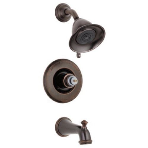 Delta® Victorian® Monitor® 14 Traditional T14455 Tub and Shower Trim, 1.5 - 2 gpm, Shower/Tub Diverter Spout, 6-1/2 Inch Spout Reach, 3-1/8 Inch Spout Height, Metal Lever Handle, 1 Handles, Round Shower Head, 2 gpm at 80 psi Shower Head, 5-1/2 Inch Dia x 4-1/4 Inch H Shower Head, 1/2 Inch Shower Head, Shower Head Spray Pattern: Full Spray, Massage, Soft Drench, 3 Shower Head Spray Functions, Pressure Balanced, Wall Mount, Solid Brass, Venetian® Bronze, Includes: Diverter and Mounting Hardware