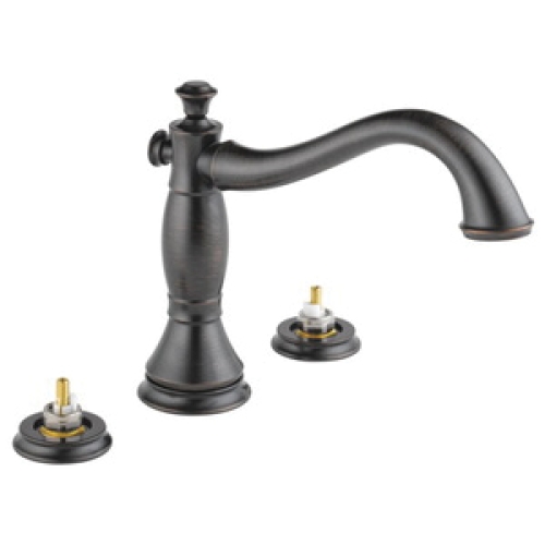 Delta® Cassidy™ T2797 Roman Tub Trim, Commercial, 18 gpm, 8 - 16 Inch Center, Slip-On Rigid Spout, 10-3/32 Inch Spout Reach, 6-19/32 Inch Spout Height, 59 Inch L Hose, 2 Handle, 3 Faucet Holes, 2-1/2 Inch Maximum Deck Thickness, Deck, Widespread Mount, 9-11/32 Inch H, Brass, Venetian® Bronze