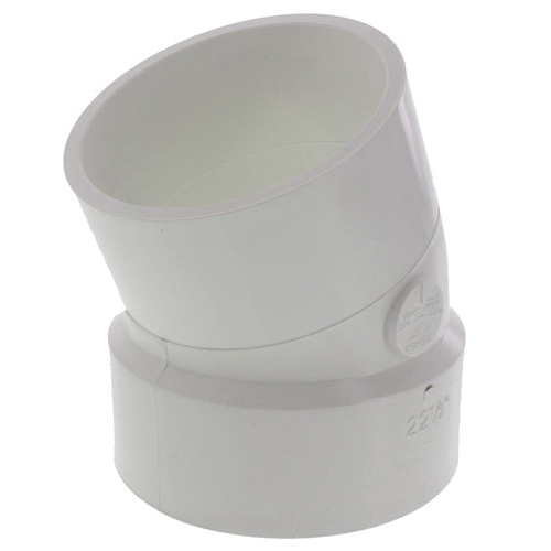 Spears® P326 DWV Pipe Street Elbow, Molded, 22-1/2 deg, 4 Inch, Hub x Spigot, SCH 40, ASTM D2665/D3311/F1866 PVC, White