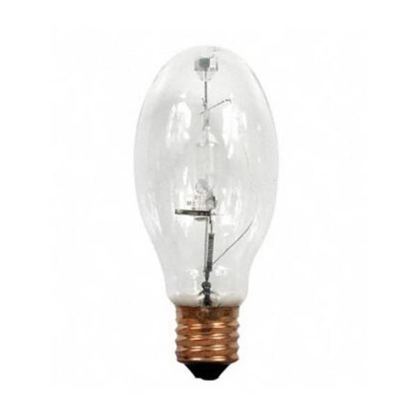 GE MVR400 Quartz Metal Halide Lamp, High Intensity Discharge, Multi-Vapor, MVR400/U/ED28, 400 W, Ellipsoidal Dimple Bulb, Mogul Screw (E39) Base, ED28, 36000 Vertical/33100 Horizontal lumens Initial, 23500 Vertical/22100 Horizontal lumens Mean, 20000 hr Vertical/15000 hr Horizontal Average Life, Cool White, CRI 65, 4000 K Color, Clear Lamp, Probe Start, M59 Ballast, Enclosed Fixture, 3-1/2 Inch Dia x 8-1/4 Inch L