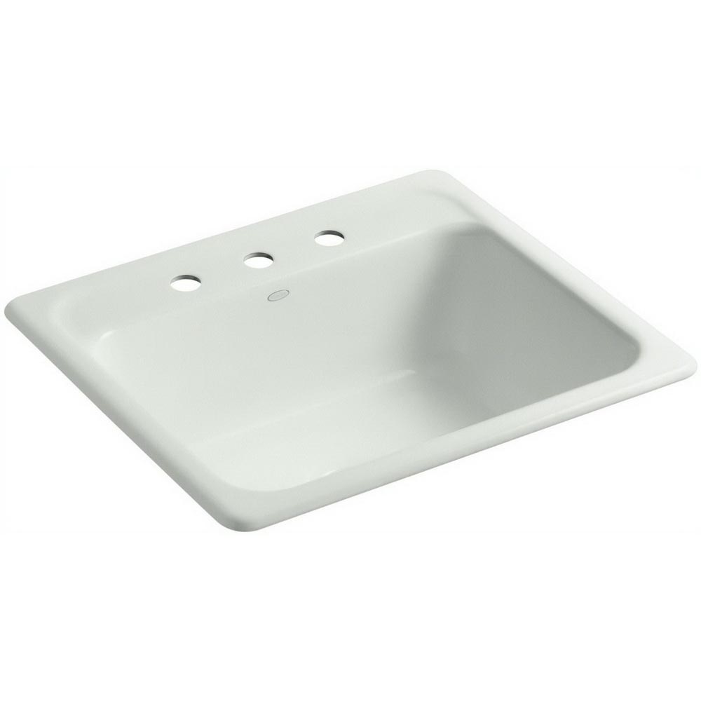 Kohler® Mayfield™ Traditional K-5964-3 Kitchen Sink, Rectangular, 22 Inch Overall Height, 25 Inch Overall Width, 8-3/4 Inch Overall Depth, Enameled Cast Iron, Sea Salt, 1 Basin, 22 Inch L x 15 Inch W x 7-3/4 Inch D Center Basin, 3 Faucet Holes, 1-3/8 Inch Faucet Hole, 4 Inch Faucet Center, Drop-In, Top Mount, 3-5/8 Inch Drain, 27 Inch W Cabinet, Includes: Installation Hardware