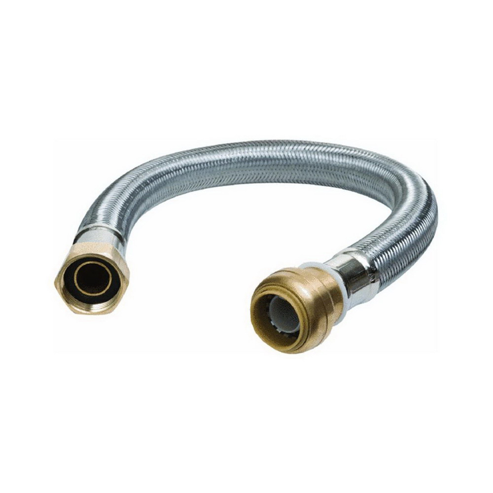 These braided, flexible water heater connector hoses combine with the rotatability of SharkBite fittings to allow connections to be made in tight spaces without additional fittings, soldering or glue.