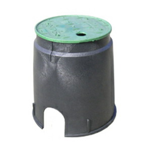 NDS™ D109 Valve Box, 6 Inch Dia, 8-1/2 Inch Width, 1/8 Inch Thickness, Round, Round, Green Cover, Polyolefin, Black