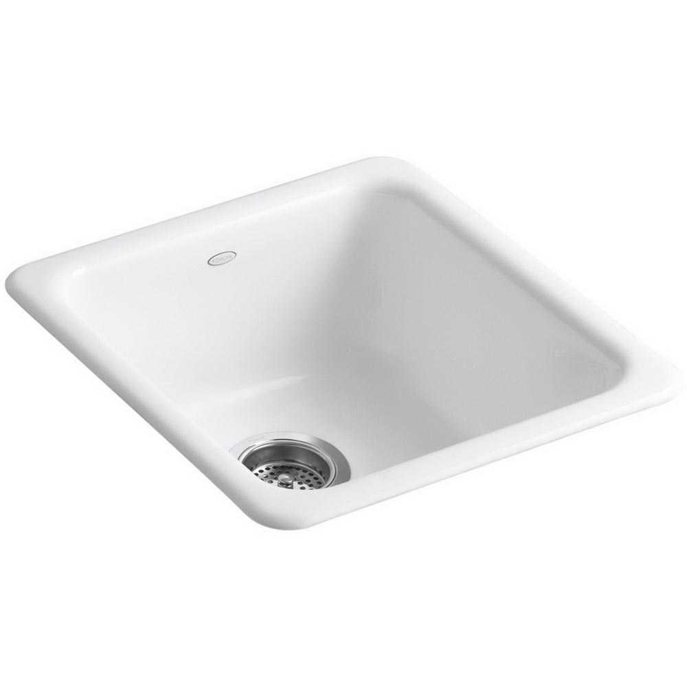 Kohler® Iron/Tones® Traditional K-6584 Kitchen Sink, Rectangular, 18-3/4 Inch Overall Height, 17 Inch Overall Width, 8-1/4 Inch Overall Depth, Enameled Cast Iron, White, 1 Basin, 14 Inch L x 16 Inch W x 7-1/2 Inch D Center Basin, Drop-In, Top Mount, Undermount, 3-7/8 Inch Drain, 18 Inch W Cabinet, Includes: 52047 Bowl Clamp Accessory Pack, 114332-7 Cut-Out Template and Mounting Hardware