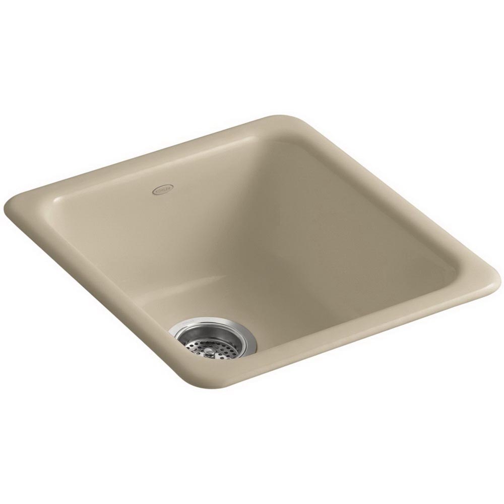 Kohler® Iron/Tones® Traditional K-6584 Kitchen Sink, Rectangular, 18-3/4 Inch Overall Height, 17 Inch Overall Width, 8-1/4 Inch Overall Depth, Enameled Cast Iron, Mexican Sand, 1 Basin, 14 Inch L x 16 Inch W x 7-1/2 Inch D Center Basin, Drop-In, Top Mount, Undermount, 3-7/8 Inch Drain, 18 Inch W Cabinet, Includes: 52047 Bowl Clamp Accessory Pack, 114332-7 Cut-Out Template and Mounting Hardware
