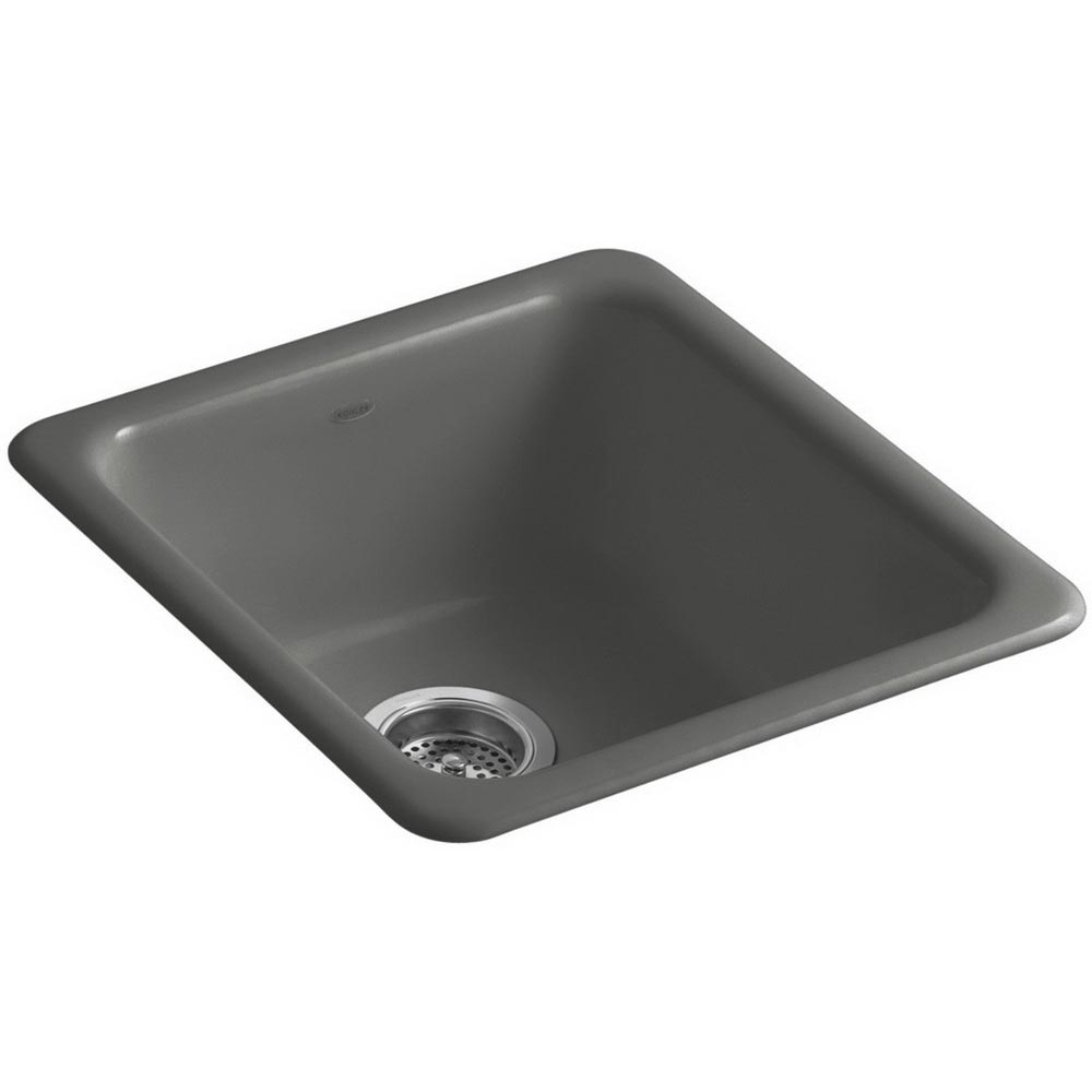 Kohler® Iron/Tones® Traditional K-6584 Kitchen Sink, Rectangular, 18-3/4 Inch Overall Height, 17 Inch Overall Width, 8-1/4 Inch Overall Depth, Enameled Cast Iron, Thunder Gray, 1 Basin, 14 Inch L x 16 Inch W x 7-1/2 Inch D Center Basin, Drop-In, Top Mount, Undermount, 3-7/8 Inch Drain, 18 Inch W Cabinet, Includes: 52047 Bowl Clamp Accessory Pack, 114332-7 Cut-Out Template and Mounting Hardware