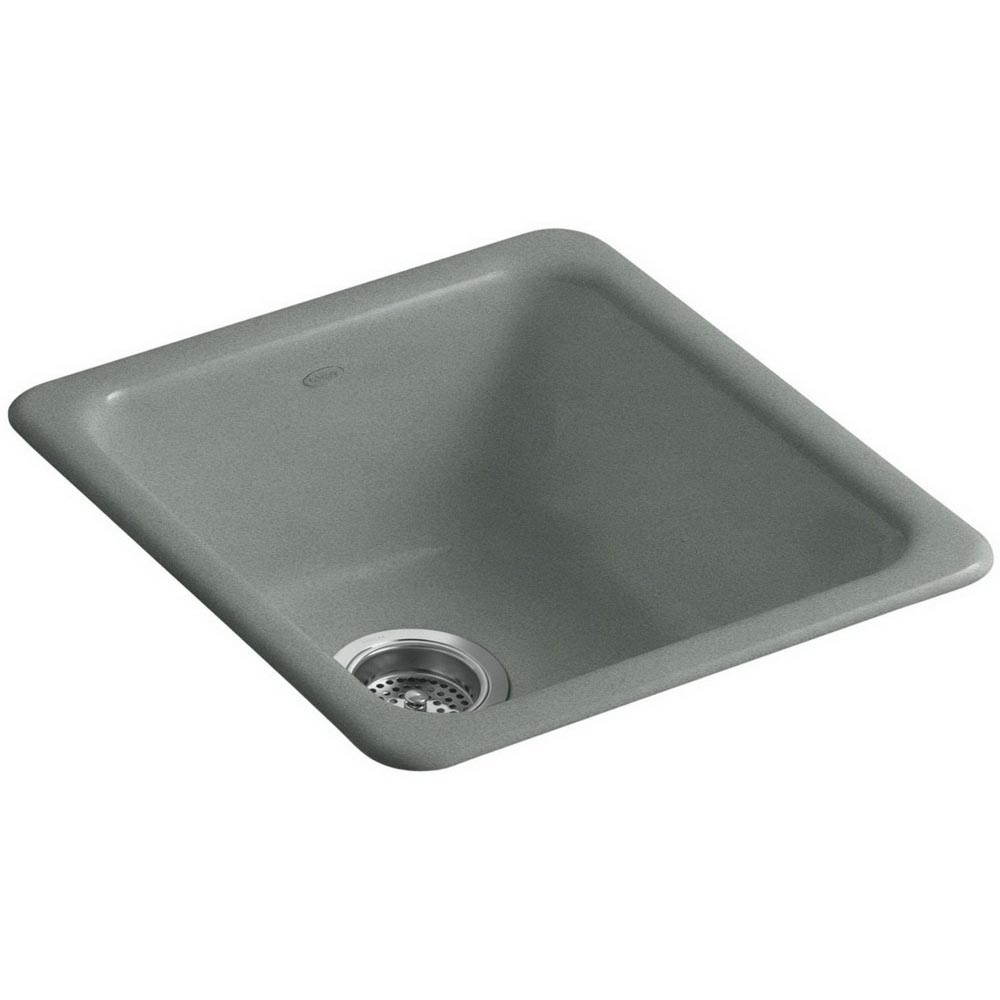 Kohler® Iron/Tones® Traditional K-6584 Kitchen Sink, Rectangular, 18-3/4 Inch Overall Height, 17 Inch Overall Width, 8-1/4 Inch Overall Depth, Enameled Cast Iron, Basalt, 1 Basin, 14 Inch L x 16 Inch W x 7-1/2 Inch D Center Basin, Drop-In, Top Mount, Undermount, 3-7/8 Inch Drain, 18 Inch W Cabinet, Includes: 52047 Bowl Clamp Accessory Pack, 114332-7 Cut-Out Template and Mounting Hardware
