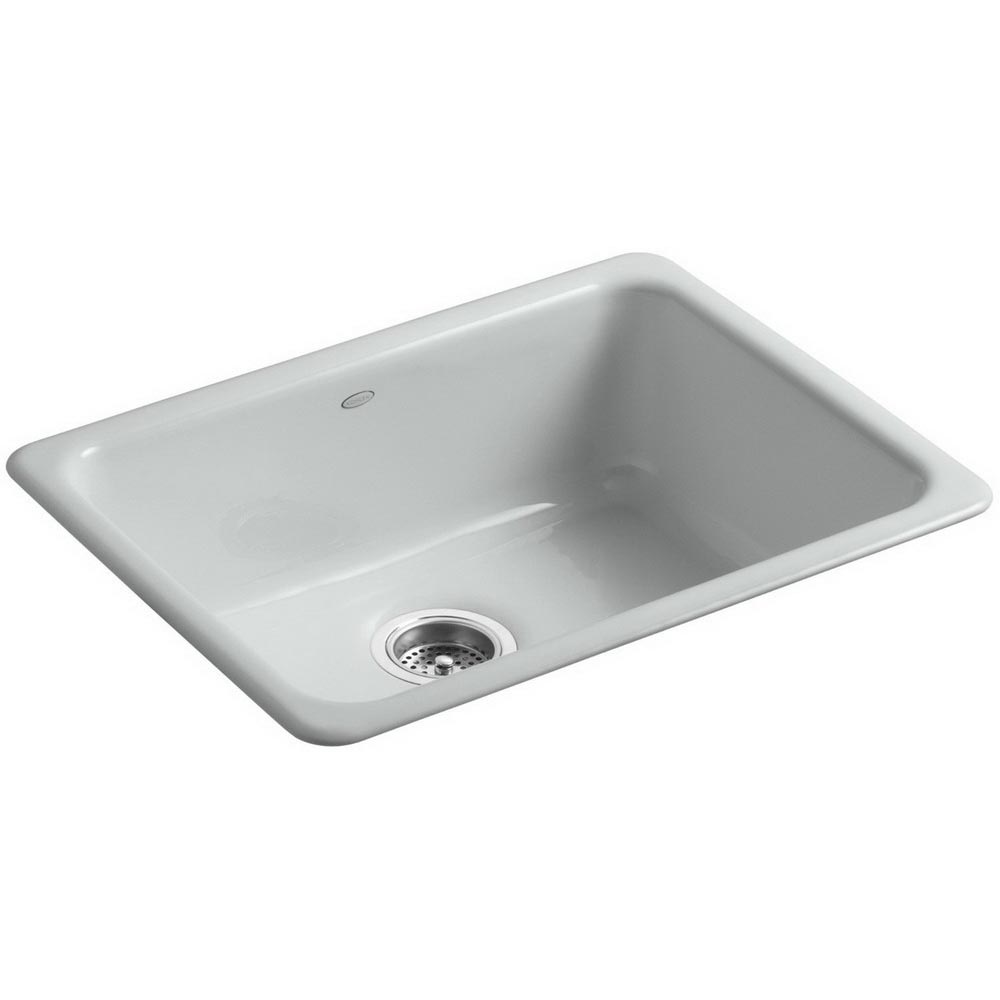 Kohler® Iron/Tones® Traditional K-6585 Kitchen Sink, Rectangular, 18-3/4 Inch Overall Height, 24-1/4 Inch Overall Width, 8-1/4 Inch Overall Depth, Enameled Cast Iron, Ice Gray, 1 Basin, 21 Inch L x 16 Inch W x 7-1/2 Inch D Center Basin, Drop-In, Top Mount, Undermount, 3-7/8 Inch Drain, 27 Inch W Cabinet, Includes: 52047 Bowl Clamp Accessory Pack, 114333-7 Cut-Out Template and Mounting Hardware