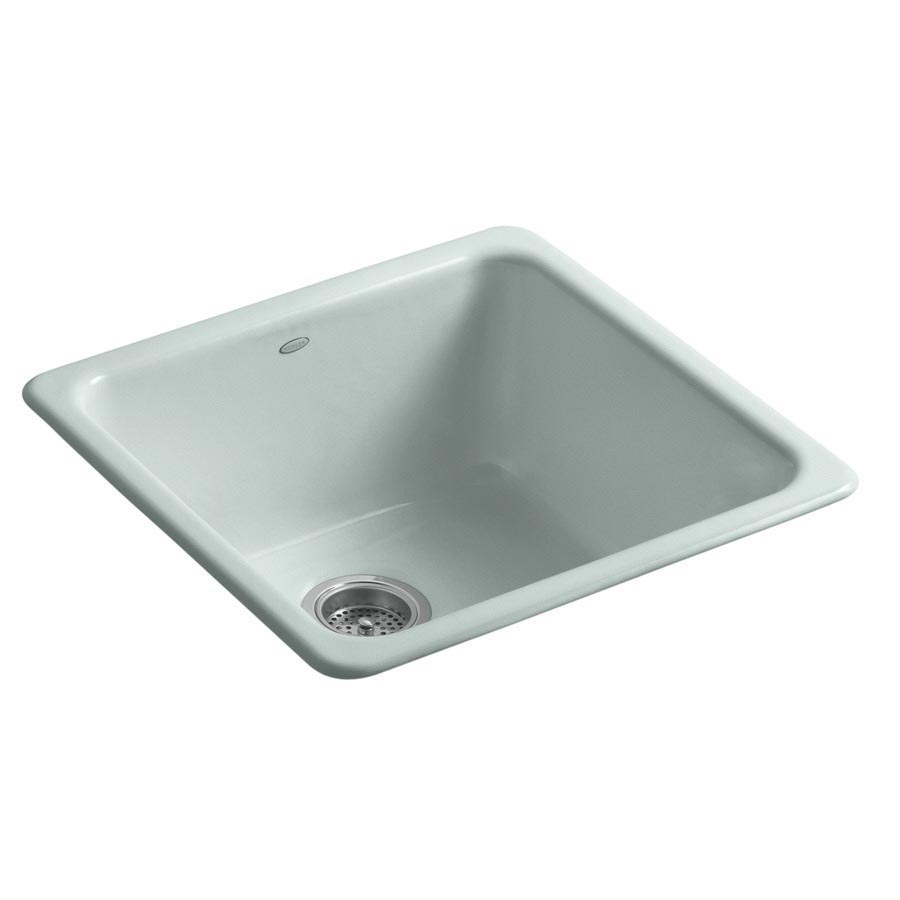 Kohler® Iron/Tones® Traditional K-6587 Kitchen Sink, Square, 20-7/8 Inch Overall Height, 20-7/8 Inch Overall Width, 10 Inch Overall Depth, Enameled Cast Iron, Frost, 1 Basin, 18 Inch L x 18 Inch W x 9-1/2 Inch D Center Basin, Drop-In, Top Mount,Undermount, 3-7/8 Inch Drain, 21 Inch W Cabinet, Includes: 52047 Bowl Clamp Accessory Pack, 114335-7 Cut-Out Template and Mounting Hardware