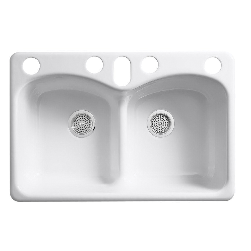 Kohler® Langlade® K-6626-6U Kitchen Sink, Rectangular, 22 Inch Overall Height, 33 Inch Overall Width, 9-5/8 Inch Overall Depth, Enameled Cast Iron, Thunder Gray, 2 Basins, 15 Inch L x 18-3/8 Inch W x 9 Inch D Left Basin, 15 Inch L x 18-3/8 Inch W x 9 Inch D Right Basin, 6 Faucet Holes, 2-3/8 Inch Faucet Hole, 4 Inch Faucet Center, Undermount, 3-7/8 Inch Drain, 36 Inch W Cabinet, Includes: 1054375 23 Inch Undermount Sink Kit and 1043754-7 Cut-Out Template