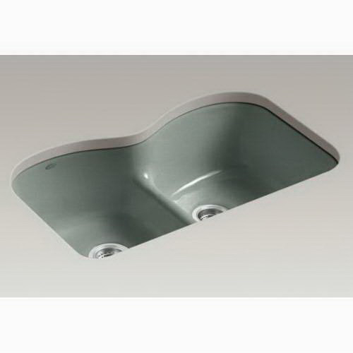 Kohler® Langlade® K-6626-6U Kitchen Sink, Rectangular, 22 Inch Overall Height, 33 Inch Overall Width, 9-5/8 Inch Overall Depth, Enameled Cast Iron, Basalt, 2 Basins, 15 Inch L x 18-3/8 Inch W x 9 Inch D Left Basin, 15 Inch L x 18-3/8 Inch W x 9 Inch D Right Basin, 6 Faucet Holes, 2-3/8 Inch Faucet Hole, 4 Inch Faucet Center, Undermount, 3-7/8 Inch Drain, 36 Inch W Cabinet, Includes: 1054375 23 Inch Undermount Sink Kit and 1043754-7 Cut-Out Template