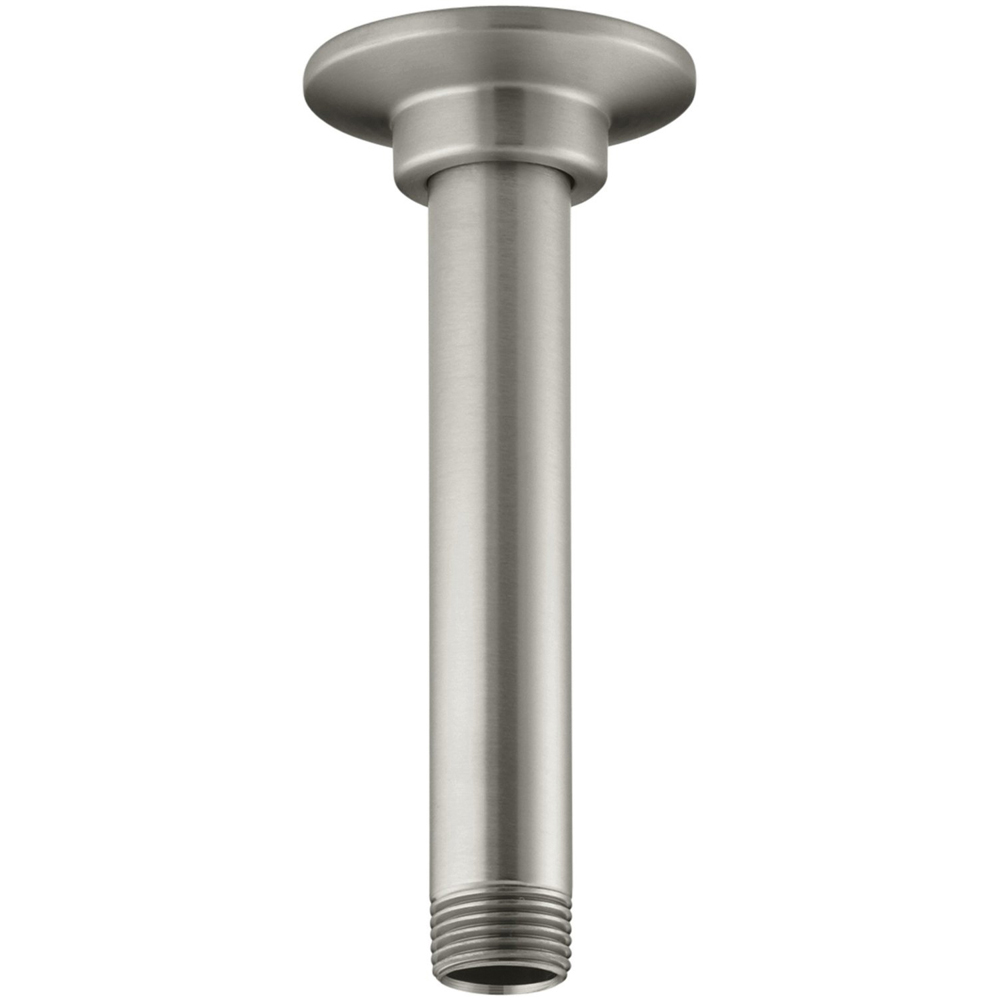Kohler® K-7392 Shower Arm, Ceiling Mount, Straight, For Use With: Overhead Rainheads, 1/2 Inch NPT, Brass, Vibrant Brushed Nickel, 6-3/8 Inch L x 2-1/4 Inch W x 2-1/4 Inch H, Includes: Flange