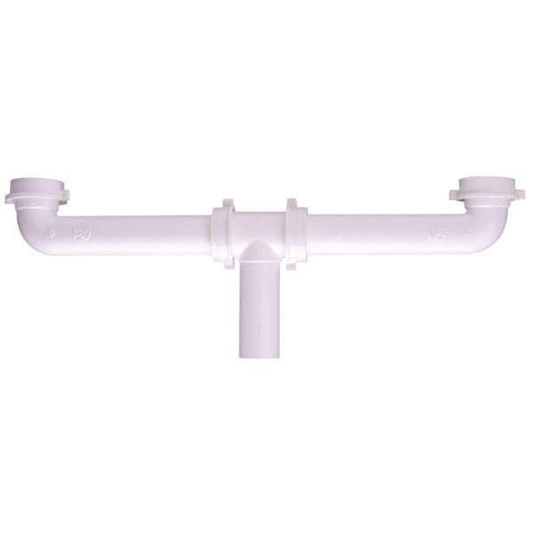 Center Outlet Waste, Universal, 1-1/2 Inch, Direct/Slip, 16 Inch Length, Polypropylene, White, Includes: Baffle Tee, (4) Slip Nut, Poly Washers and (2) Waste Arm