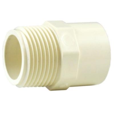 The NIBCO® CPVC-CTS male adapter is made of FlowGuard Gold® CPVC and is ideally suited for hot and cold water pressure distribution systems in residential and commercial applications. The CPVC-CTS male adapter features a female socket x male NPT threaded connection and provides a means for adapting a solvent weld connection to a threaded connection. Please refer to NIBCO technical data sheets and catalogs for engineering and installation information. Chlorinated polyvinyl chloride (CPVC) has proven to be an excellent material for hot corrosive liquids, hot and cold water distribution, and similar applications above the temperature range of PVC. CPVC will not rust, pit, scale or corrode. CPVC fittings are easy-to install and are joined by solvent cementing or threading.