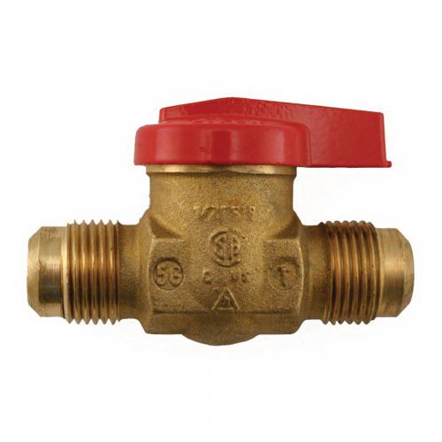 Gas Ball Valve, 1-Piece, Straight, 1/2 Inch, Flared, 2 psi, Forged Brass Body, Chrome Plated Forged Brass Ball, Lever Actuator, 175 deg F
