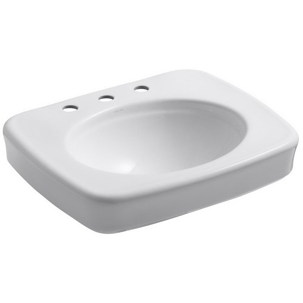 Kohler® Bancroft® Traditional K-2340 Bathroom Sink with Overflow, Oval, 21 Inch H x 24 Inch W, 3 Faucet Holes