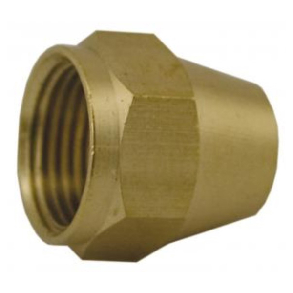 Regular Short Tube Nut, 3/8 Inch, Flared, Brass, Yellow