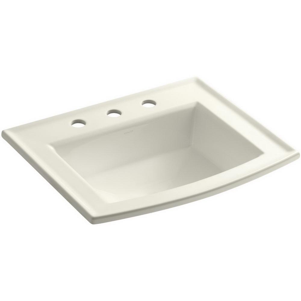 Kohler® Archer® Modern K-2356 Bathroom Sink, Rectangular, 19-7/16 Inch Overall Height, 22-5/8 Inch Overall Width, 7-7/8 Inch Overall Depth, Vitreous China, Biscuit, 1 Basin, 16-7/8 Inch L x 12-9/16 Inch W x 4 Inch D Center Basin, 3 Faucet Holes, 1-3/8 Inch Faucet Hole, 8 Inch Faucet Center, Drop-In, Self-Rimming, Widespread Mount, 1-3/4 Inch Drain, Includes: 1051936-7 Cut-Out Template and Mounting Hardwares