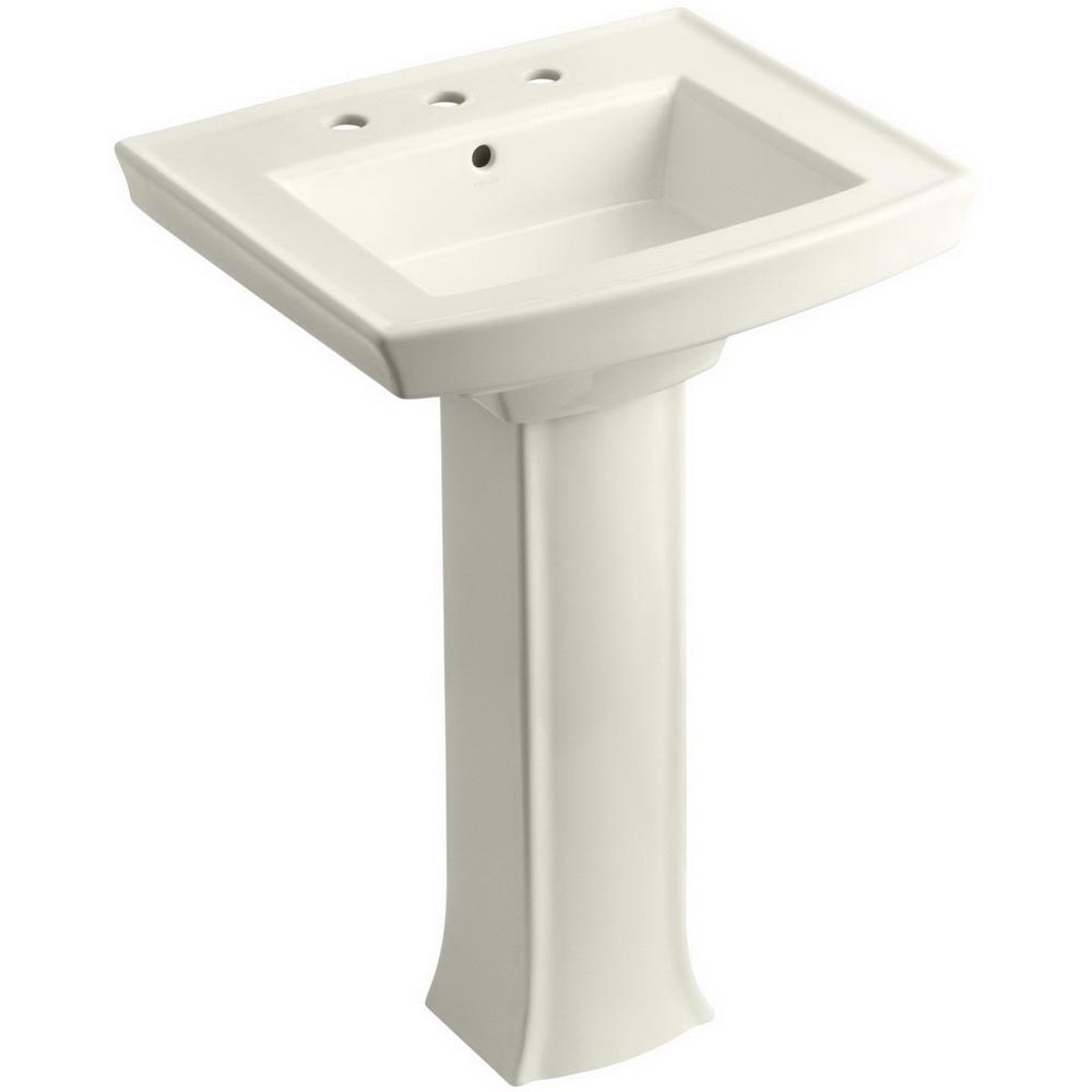 Kohler® Archer® Traditional K-2359 Bathroom Sink, Rectangular, 20-7/16 Inch Overall Height, 23-15/16 Inch Overall Width, 35-1/4 Inch Overall Depth, Vitreous China, Biscuit, 1 Basin, 16-1/4 Inch L x 11-15/16 Inch W x 4 Inch D Center Basin, 3 Faucet Holes, 1-3/8 Inch Faucet Hole, 8 Inch Faucet Center, Pedestal, Widespread Mount, 1-3/4 Inch Drain, Includes: 1047155 Pedestal Hardware Pack and 63069 Rubber Pads