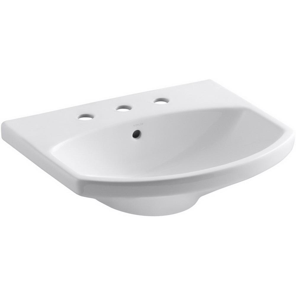 Kohler® Cimarron® Modern K-2363 Bathroom Sink, Rectangular, 18-7/8 Inch Overall Height, 22-3/4 Inch Overall Width, 7-11/16 Inch Overall Depth, Vitreous China, White, 1 Basin, 21 Inch L x 12-3/4 Inch W x 3-5/8 Inch D Center Basin, 3 Faucet Holes, 1-3/8 Inch Faucet Hole, 8 Inch Faucet Center, Pedestal, Widespread Mount, 1-3/4 Inch Drain