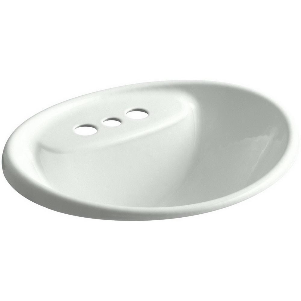 Kohler® Tides® Traditional K-2839-4 Bathroom Sink, Oval, 17 Inch Overall Height, 20 Inch Overall Width, 9-5/16 Inch Overall Depth, Enameled Cast Iron, Sea Salt, 1 Basin, 18-1/16 Inch L x 10-3/16 Inch W x 7-1/2 Inch D Center Basin, 3 Faucet Holes, 1-3/8 Inch Faucet Hole, 4 Inch Faucet Center, Centerset, Drop-In, Self-Rimming Mount, 1-5/8 Inch Drain, 22 Inch W Cabinet, Includes: Mounting Hardware