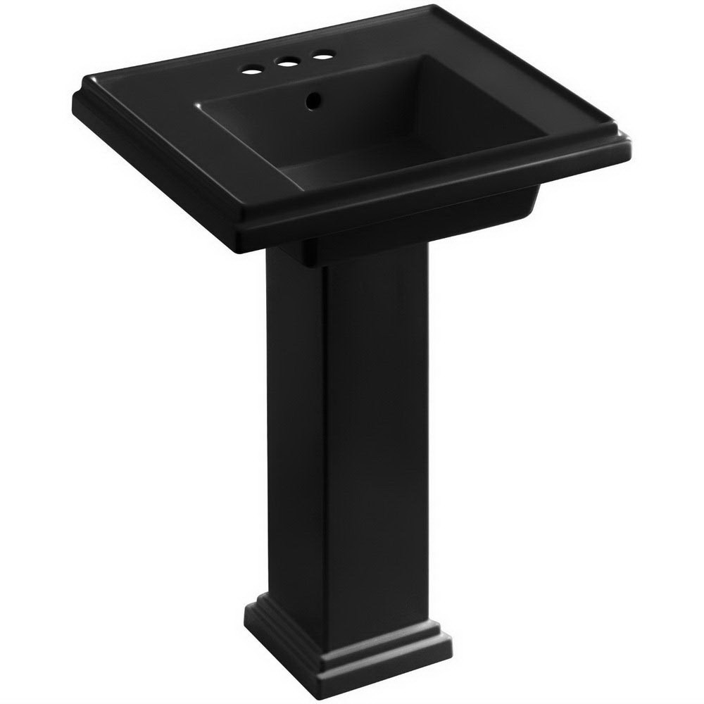 Kohler® Tresham® Modern K-2844-4 Bathroom Sink, Square, 19-1/2 Inch Overall Height, 24 Inch Overall Width, 34-5/8 Inch Overall Depth, Fireclay, Black, 1 Basin, 14-1/4 Inch L x 12-1/2 Inch W x 3-1/4 Inch D Center Basin, 3 Faucet Holes, 1-1/4 Inch Faucet Hole, 4 Inch Faucet Center, Centerset, Single Pedestal Mount, 1-3/4 Inch Drain, Includes: 52204 Pedestal Accessory Pack, 63069 Rubber Pads, K-2757-1 Basin and K-2767 Pedestal
