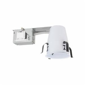 Small aperture thermally protected, specification grade recessed housing. For remodel application non-insulated ceilings or where insulation can be kept 3" from housing. For fast and easy installation in existing plaster or mechanical ceilings from 1/2 inch to 1-3/8" thick. Four remodel clips are easily retractable for fixture removal if necessary. Junction box is provided with eight 1/2 inch KOs and four Romex knockouts with strain relief. Accommodates up to 50W PAR20, R20, and A19 lamps.