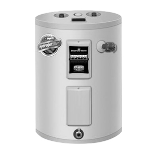 Bradford White® Hydrojet® ElectriFLEX™ Electric Water Heater, Commercial Lowboy Energy Saver Light Duty, 240 V, 3 Phase, 4500 W, 3/4 Inch NPT, 19 gal Tank, 18 gph at 100 deg F Recovery, Magnesium Anode Rod Heating Element, Surface Mount, 3/4 Inch NPT Water Connection, 1600 deg F, Steel, Vitraglas®, 18 Inch Dia x 24-3/4 Inch H, Includes Temperature and Pressure Relief Valve