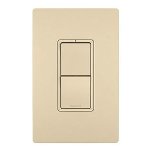 Radiant® Decorator Combination Switch, 2-Pole, 3-Way Switch, Ivory, 120/125 VAC, 15 A Rocker, 2 Switches, Wall Mount