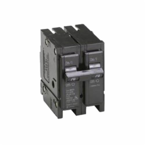 Cutler-Hammer Circuit Breaker, Series: Series BR, Light Commercial/Residential, 120/240 VAC, 70 A, 10 kA Interrupt, Common/Thermal-Magnetic Trip, 2 Pole, Toggle Handle Actuator, 8 - 1/0 AWG Aluminum/Copper Wire, Plug-On Mount, 60 to 75 deg C, 3 Inch L x 2 Inch W x 3 Inch H