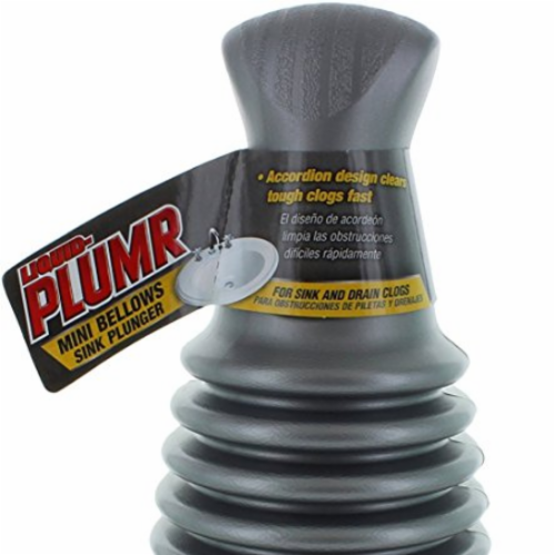 Liquid Plumr® Sink and Drain Plunger, Mini Bellow, For Use With: Sinks, Showers and Tubs, Plastic, Gray/Red, 6.8 Inch H