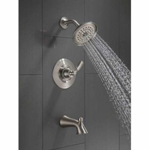 DELTA® Tub and Shower Trim, Series: Woodhurst™ Monitor® 14, 1.75 gpm at 80 psi, 6-1/2 Inch Spout Height, Lever Handle, 1 Handles, Touch-Clean® Raincan Shower Head Type, 5-7/8 Inch Shower Head Size, Single-Function Pressure Balance Cartridge, 1.75 gpm at 80 psi Hand Shower Flow Rate, Full Body Hand Shower Spray Pattern, Stainless