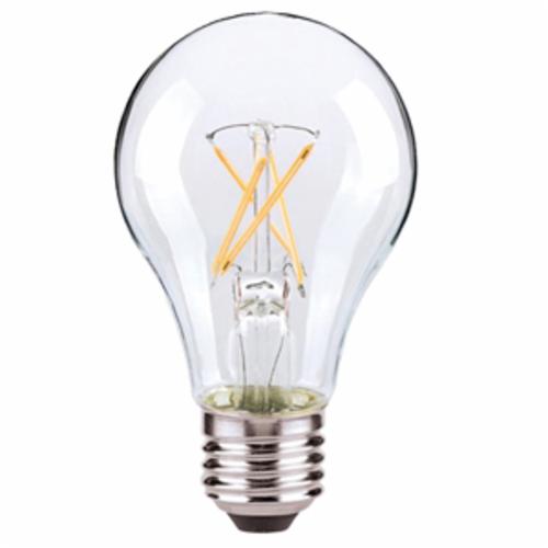 SATCO® LED Lamp, Dimmable, 7A19/CL/LED/E26/27K/ES/120V, 7 W, 120 VAC, LED Bulb, E26 Medium Base, A19, 800 lumens Initial, 15000 hr Average Life, Warm White, 80 CRI CRI, 2700 K Color, Clear Lamp, Enclosed Fixture, 360 deg Beam, 4-1/8 Inch L x 2-3/8 Inch D