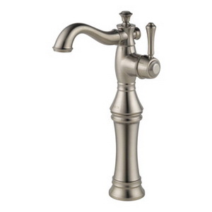 Delta® Lavatory Faucet, Centerset, Series: Cassidy™, 1.2 gpm at 60 psi, High Arc Spout, 5-13/32 Inch Spout Reach, 11-9/16 Inch Spout Height, 1/2-14 Hose, Ceramic Valve Cartridge, Lever Handle, 1 Handle, 1 Faucet Hole, NPSM, 2-1/4 Inch Maximum Deck Thickness, 1-Hole/3-Hole/Deck Mount, Solid Brass, Stainless, Includes: Handle, Mounting Hardware