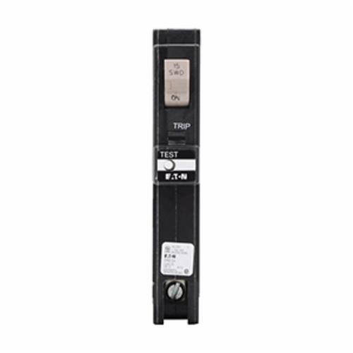 Cutler-Hammer Ground Fault Circuit Breaker, Type CH, Series: CHF, Residential, 120 VAC, 15 A, 10 kA Interrupt, Thermal Magnetic Trip, 1 Pole, 14 - 6 AWG Copper/Aluminum Wire, Plug-On Mount, 40 deg C, 3-1/2 Inch L x 1 Inch W x 3 Inch H