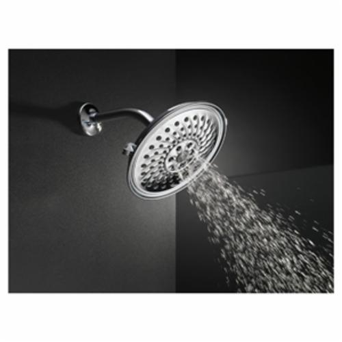 DELTA® Shower Head, Raincan, 1.75 gpm at 80 psi, 6.6 lpm at 552 kPa, 8-1/4 Inch Face Dia, 1/2 Inch IPS, Spray Pattern: Full Body Spray, Pause, H2Okinetic® Spray, 3 Spray Functions, 3-1/2 Inch H, Plastic, Chrome