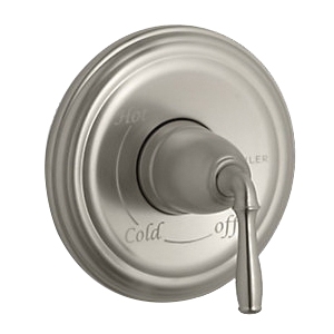 Kohler® Valve Trim, Series: Devonshire®, 1 Handle, Pressure Balanced, Metal Lever Handle, Wall Mount, Brass, Vibrant® Brushed Nickel, 7 Inch Dia x 4-5/16 Inch D, Includes: Face Plate with Handle, For Use With: Rite-Temp® Valve