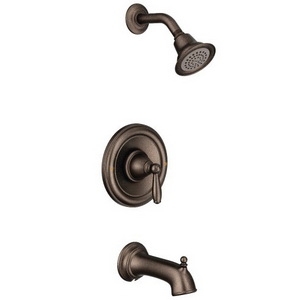 Moen® Tub and Shower Trim, Series: Brantford™, Posi-Temp®, T2153, 2.5 gpm at 80 psi, Slip-Fit Diverter, Tapered Spout, 6-1/2 Inch Spout Reach, Lever Handle, 1 Handle, 2.5 gpm at 80 psi Shower Head Flow Rate, 3-1/2 Inch Dia Shower Head Size, 1 Number of Shower Head Spray Functions, 1222 Pressure Balanced, Metal, Oil-Rubbed Bronze, Includes: Shower Head, Arm, Flange, Diverter Tub Spout