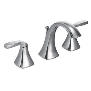 Moen® T6905 Voss™ Widespread Bathroom Faucet, 1.2 gpm at 60 psi, 8 - 16 Inch Center Distance, Fixed Spout, 4-3/4 Inch Spout Reach, 5-7/8 Inch Spout Height, 1234™ Duralast™ Cartridge, 2 Lever Handle, 3 Faucet Holes, 1/2 Inch IPS, Deck Mount, Metal