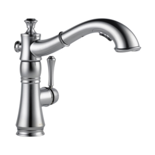 DELTA® 4197-AR-DST CASSIDY™ Kitchen Faucet, 1.8 gpm at 60 psi, 8 Inch Center Distance, Tall/High Arc, Pull-Out Spout, 10.06 Inch Spout Reach, 10-11/16 Inch Spout Height, Ceramic Cartridge, 1 Euro-Motion Handle, 1/3 Faucet Holes, 2 Spray Functions
