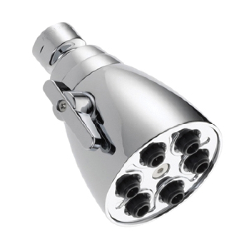 DELTA® Shower Head, 6-Jet, Series: Fundamentals™, 2.5 gpm at 80 psi, 1/2 Inch, Spray Pattern: Adjustable Full Body Spray, 1 Spray Function, 2-3/4 Inch Dia x 3 Inch L, Plastic, Chrome