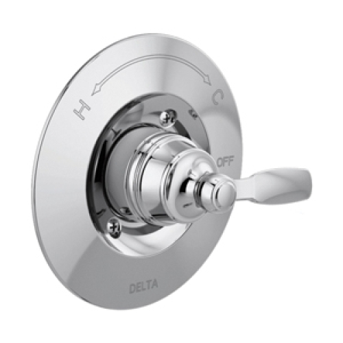DELTA® Valve Trim, Series: Woodhurst®, 1.75 gpm at 80 psi, 1 Handle, Pressure Balanced, Slip-On, Chrome, 6-1/2 Inch Dia, Includes: Universal Adapter, For Use With: MultiChoice® Universal Rough Valve Body