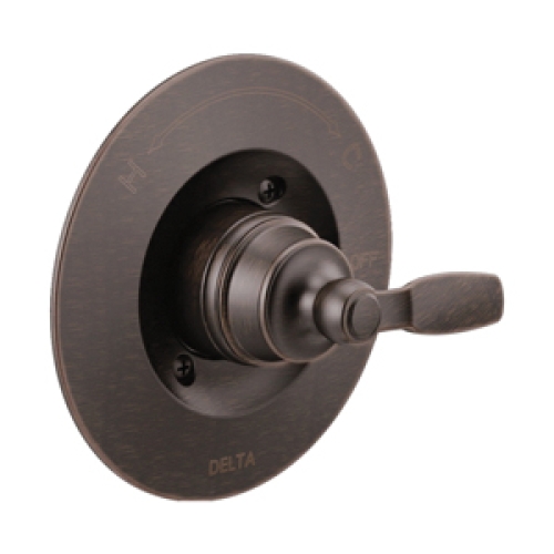 DELTA® Valve Trim, Series: Woodhurst®, 1.75 gpm at 80 psi, 1 Handle, Pressure Balanced, Slip-On, Venetian Bronze, 6-1/2 Inch Dia, Includes: Universal Adapter, For Use With: MultiChoice® Universal Rough Valve Body