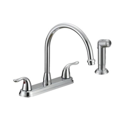 Matco-Norca Kitchen Faucet, 1.5 gpm at 60 psi, Goose Neck Spout, 8-5/16 Inch Spout Reach, 5-3/8 Inch Spout Height, Ceramic Cartridge, Lever Handle, 2 Handles, 4 Faucet Holes, Threaded, Spray Pattern: Side Spray, Centerset Mount, 10-5/8 Inch H x 10-1/16 Inch W, Polished Chrome