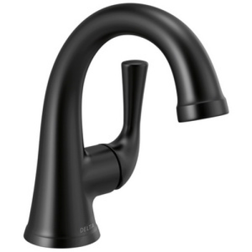 DELTA® Bathroom Faucet, Rigid Spout, 5 Inch Spout Reach, 4-1/2 Inch Spout Height, 1 Handle, Compression, 1-5/8 Inch Maximum Deck Thickness, 6-7/8 Inch H, Matte Black, Includes: Metal Push Pop-Up Drain Assembly