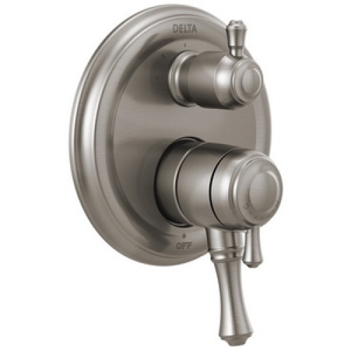 DELTA® Valve Trim, Series: Monitor® 17 Series, 5.8 gpm, 3 Handles, Pressure Balance, Lever Handle, Stainless Steel, 7 Inch Dia, Includes: Cartridge