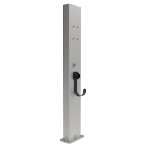 The single-sided EV charger pedestal includes (1) cable management hook with (1) plug holder. The EV Charger itself, as well as the base cover, are not included. The pedestal is also cETLus Listed to allow for open splices within the pedestal, eliminating the need for a junction box.