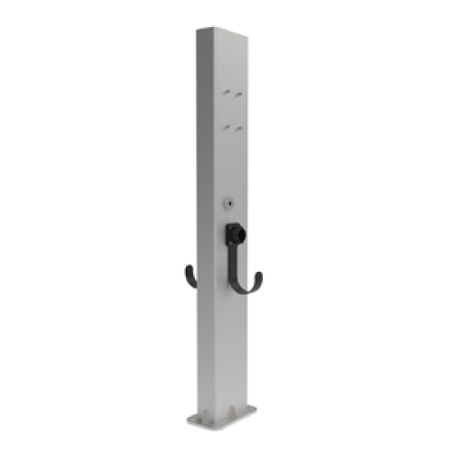 Wiremold® EV Charger Pedestal, Dual-Sided, 48 A, Silver, -22 to 122 deg F, For Use With: Electric Vehicle Charger, 3.54 Inch L x 7.87 Inch W x 54.84 Inch H, Includes: (2) Cable Management Hooks with (2) Plug Holders