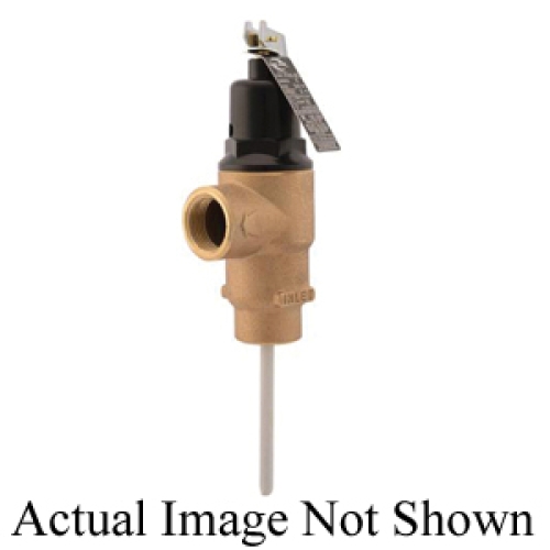 Cash Acme Temperature and Pressure Relief Valve, Series: FVMX, 3/4 Inch Nominal, Male End Style, 75 - 15 psi Pressure, Media: Hot Water, Brass Body, Stainless Steel Spring, Brass/Stainless Steel Trim, Silicone Softgoods, EP Diaphragm, 210 deg F, Warranty: Limited